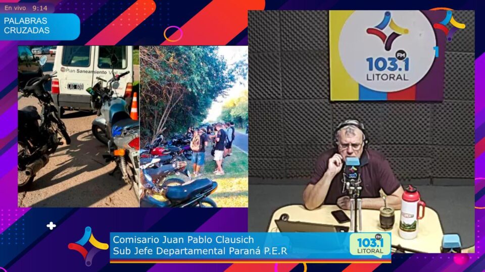 En diálogo con Palabras Cruzadas por FM Litoral, el Comisario Juan Pablo Clausich brindó detalles del operativo que se concentró en la zona del Parque Botánico y la calle Pedro Londero. «Ya venimos trabajando sobre esta problemática de motovehículos que ingresan a la ciudad en caravana realizando maniobras peligrosas y cruces de semáforos en rojo», explicó el funcionario policial.