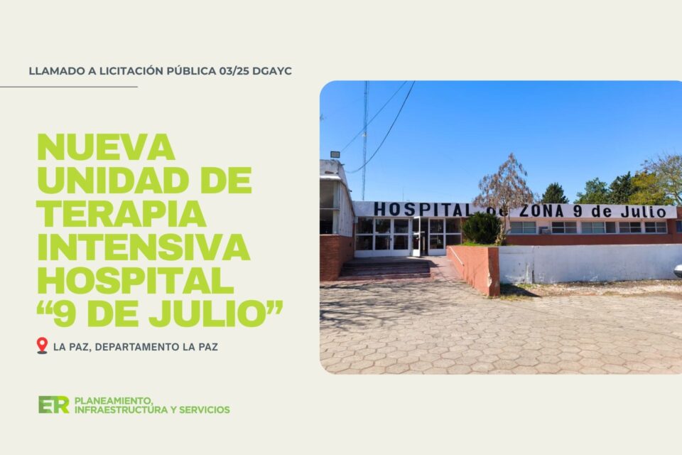 Con una inversión provincial cercana a los 946 millones de pesos, el Gobierno de Entre Ríos llamó a licitación la construcción de una moderna Unidad de Terapia Intensiva (UTI), en el Hospital 9 de Julio de La Paz.