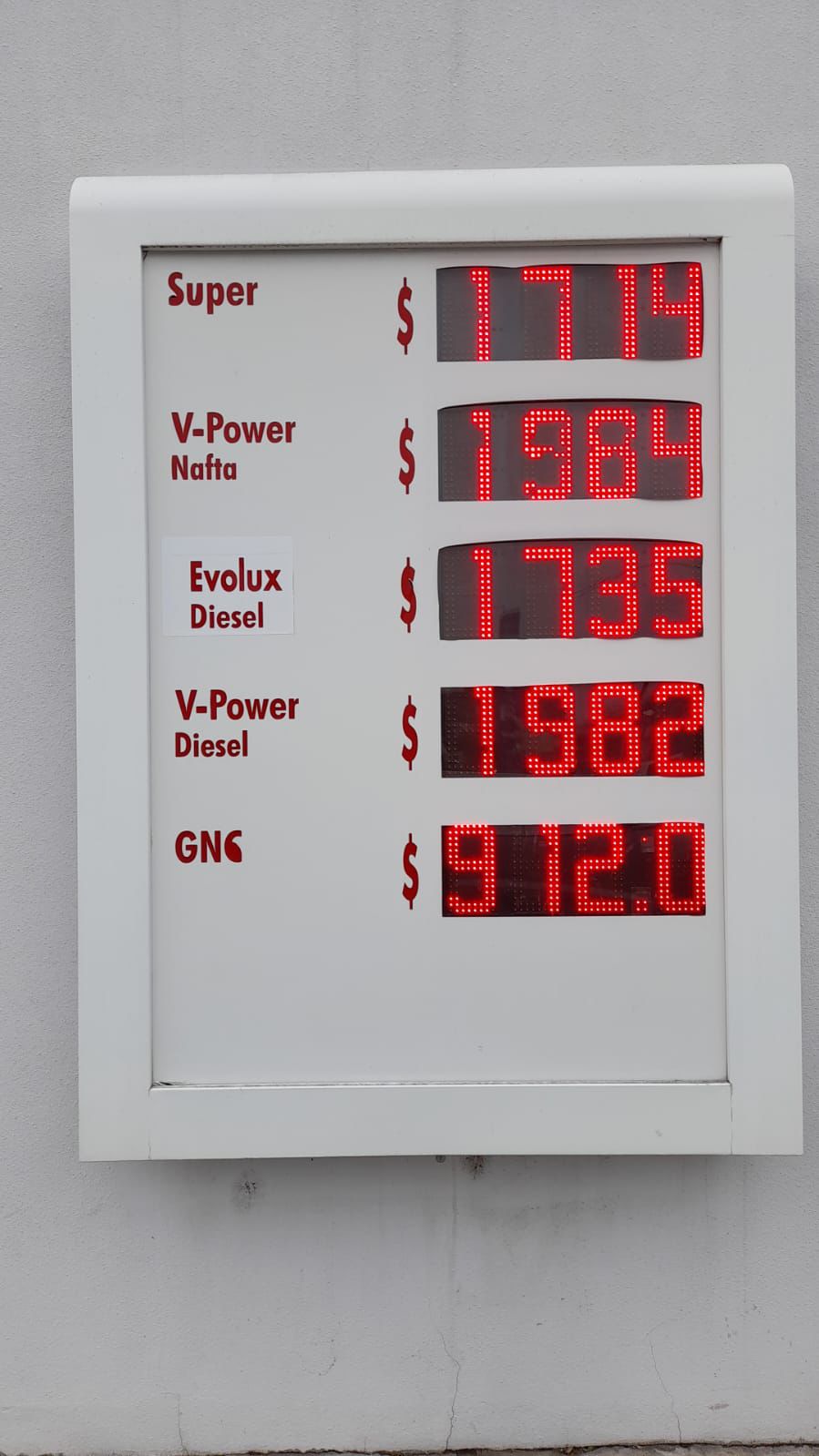 | V-Power Nafta | $1.973 | $1.984 | Sin cambios* |